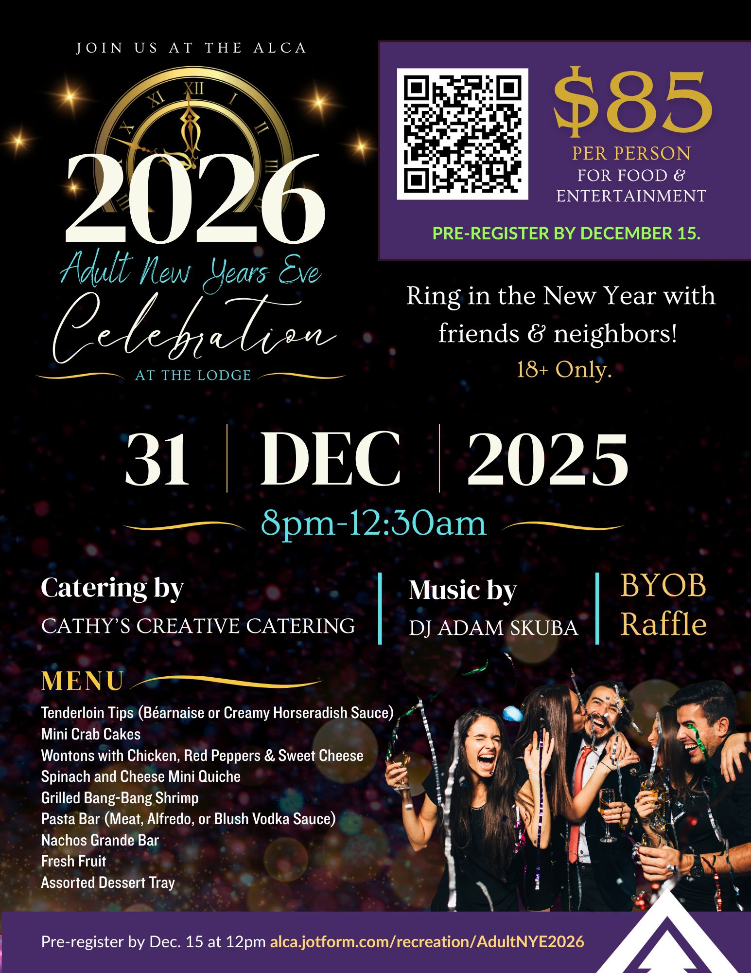 Celebrate the new year with your Arrowhead friends! 8pm to 12:30am at the Lodge. Entertainment by DJ Adam Skuba. Catering by Cathy's Creative Catering. BYOB and Raffle. $85 per person (18 years and older only). Register by December 15 at 12pm HERE. MENU Tenderloin Tips (Béarnaise or Creamy Horseradish Sauce) Mini Crab Cakes Wontons with …